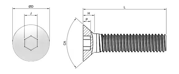 DIN 7991 standardı, içten alyen (imbus) soketli ve havşa başlı (konik) tasarıma sahip bağlantı cıvatalarını tanımlar. Baş kısmı konik formda olup, montaj yüzeyine tamamen gömülerek dışa taşma yapmaz. Bu yapı, hem estetik bir görünüm sunar hem de yüzeyin düz kalması gereken uygulamalarda ideal bir çözüm oluşturur. İçten alyen başlığı, yüksek torkla sağlam sıkma imkânı sağlar.