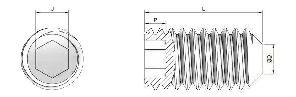 DIN 916 standardı, başsız ve ucu noktalı (konik sivri) şekilde tasarlanmış, içten alyen (imbus) soketli setiskur cıvatalarını tanımlar. Noktalı uç yapısı sayesinde sabitlenecek yüzeye keskin şekilde temas ederek derinlemesine tutunur ve bağlantının gevşemesini önler. Başsız tasarımı sayesinde cıvata montaj yüzeyine tamamen gömülür, dışarıdan görünmez.