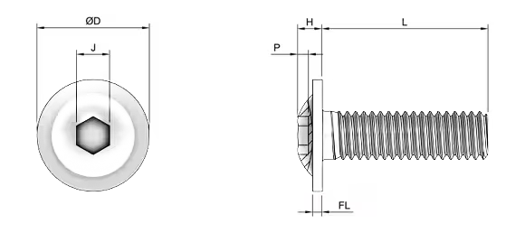 ISO 7380 standardı, bombeli (yuvarlak) başlı ve baş altı entegre pullu yapıya sahip, içten alyen (imbus) soketli bağlantı cıvatalarını tanımlar. Bu cıvata tipi, ISO 7380’ye göre daha geniş baş altı yüzeyine sahiptir; entegre pul etkisi sayesinde sıkma sırasında yükü yayarak yüzey deformasyonunu önler. Bombe baş formu estetik bir görünüm sunarken, içten imbus yapısı montaj kolaylığı sağlar.