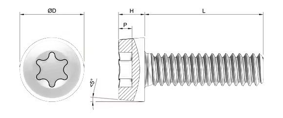 ISO 14580 standardı, silindirik başlı, alçak profilli ve içten yıldız (Torx – TX) soketli bağlantı cıvatalarını tanımlar. Klasik Torx cıvatalara göre daha düşük baş yüksekliğine sahip olan bu tasarım, sınırlı montaj alanlarında kullanım kolaylığı sağlar. Torx yapısı, yüksek tork altında kamalanmayı engelleyerek baş deformasyonunu önler. Alçak baş formu ise estetik ve çıkıntısız bir bağlantı çözümü sunar.