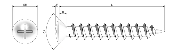 DIN 7983 standardına uygun YMB tip sac vidaları, yıldız bombe baş havşalı baş yapısı ve sivri uçlu kaba diş formu ile sac ve ince metal yüzeylerde estetik ve yüzeye gömülen bir bağlantı sunar. Bombe baş havşalı tasarımı sayesinde hem dekoratif bir görünüm sağlar hem de bağlantı yüzeyine dengeli bir baskı uygular. Sivri uç yapısı, ön delik gerektirmeden doğrudan uygulanmasına imkân tanır.