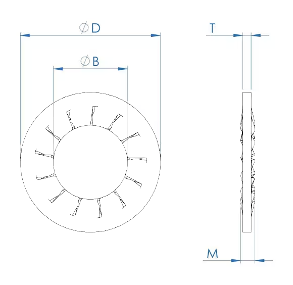DIN 6798 J, iç çevresinde düzenli olarak yerleştirilmiş tırtıllarla tasarlanmış bir kilitleme rondelası standardıdır. İçten tırtıllı yapısı sayesinde, montaj sırasında cıvata, saplama ya da vida gövdesine sıkıca tutunarak bağlantının gevşemesini ve dönmesini etkili şekilde engeller.