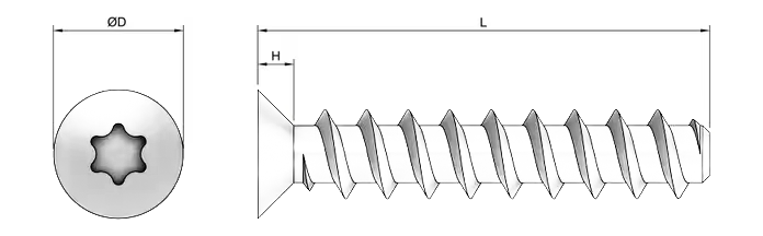 KRM 9090 TX, YHB (Yassı Havşa Baş) formunda tasarlanmış, küt uçlu ve Torx (TX) tahrikli özel bir plastik vidadır. Havşa baş yapısı, montaj yüzeyine tamamen gömülerek düz bir görünüm sağlar. Küt uç yapısı sayesinde alt yüzeyde delici etki yaratmaz; özellikle hassas yüzeylerde çatlama, yarılma veya baskı hasarı oluşturmaz.