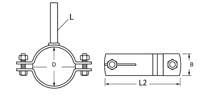 Kelepçenin sap kısmı, montaj aparatlarıyla kolayca entegre edilerek hızlı ve güvenli sabitleme imkânı sunar. Farklı çap ölçülerine uygun seçenekleriyle tesisat sistemlerinde geniş bir kullanım alanına sahiptir.