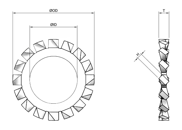 DIN 6798 A, dış çevresi boyunca yer alan düzenli tırtıklı yapısı sayesinde, bağlantı elemanlarının yüzeyle daha sıkı temasta bulunmasını sağlayan özel bir kilit rondela standardıdır. Dıştan tırtıllı bu yapı, montaj sırasında yüzeye penetre olarak bağlantının dönmesini ve gevşemesini etkili şekilde engeller.