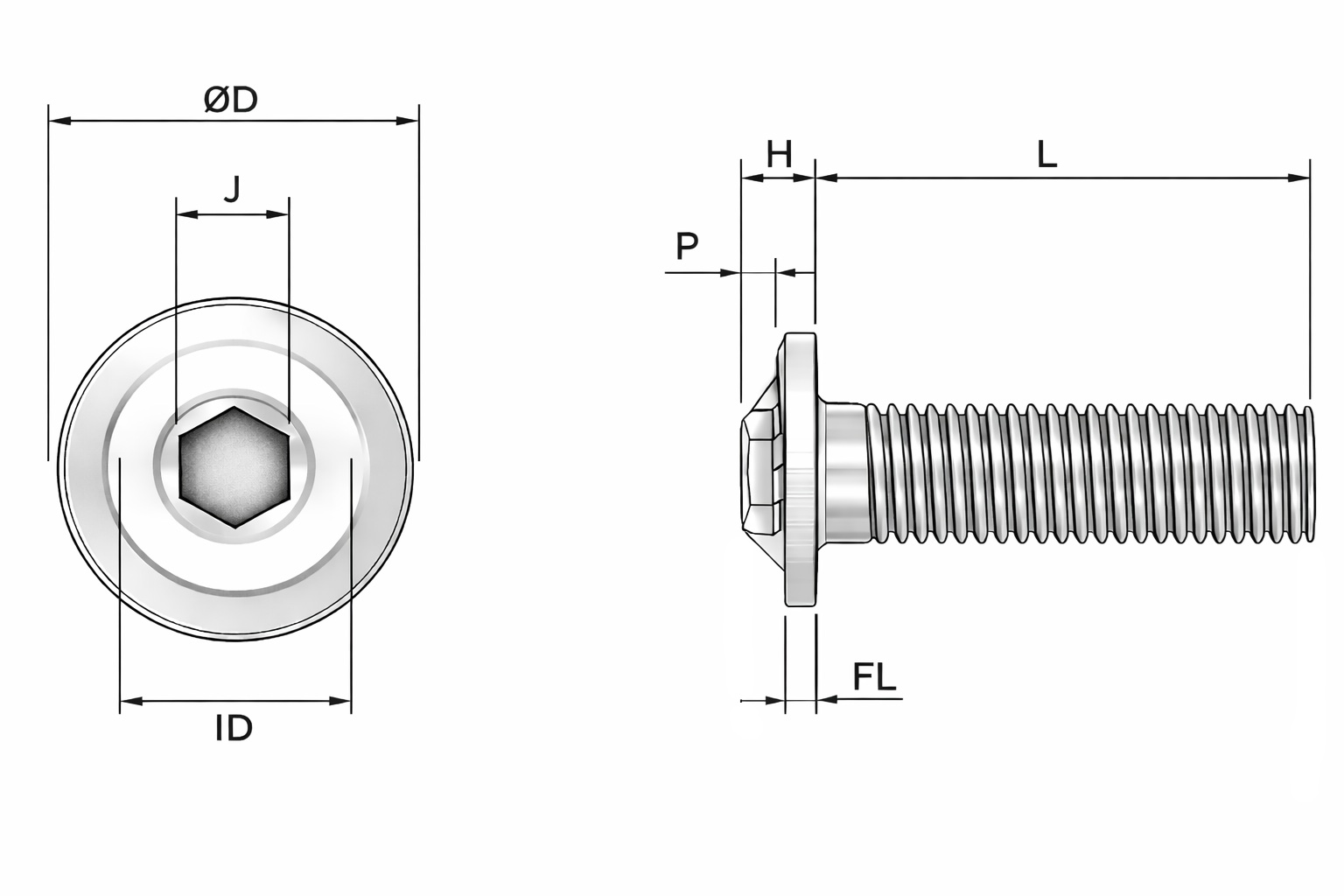 ISO 7380 standardı, bombeli (yuvarlak) başlı ve baş altı entegre pullu yapıya sahip, içten alyen (imbus) soketli bağlantı cıvatalarını tanımlar. Bu cıvata tipi, ISO 7380’ye göre daha geniş baş altı yüzeyine sahiptir; entegre pul etkisi sayesinde sıkma sırasında yükü yayarak yüzey deformasyonunu önler. Bombe baş formu estetik bir görünüm sunarken, içten imbus yapısı montaj kolaylığı sağlar.