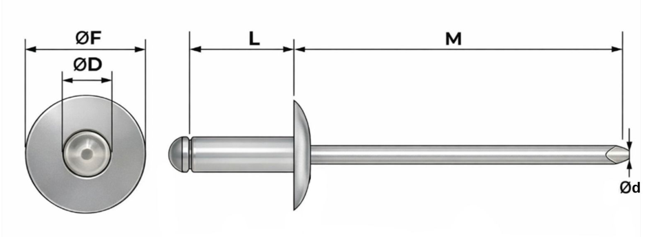 | Malzeme (Gövde / Perçin) | Paslanmaz Çelik (A4) / Paslanmaz Çelik (A4) |